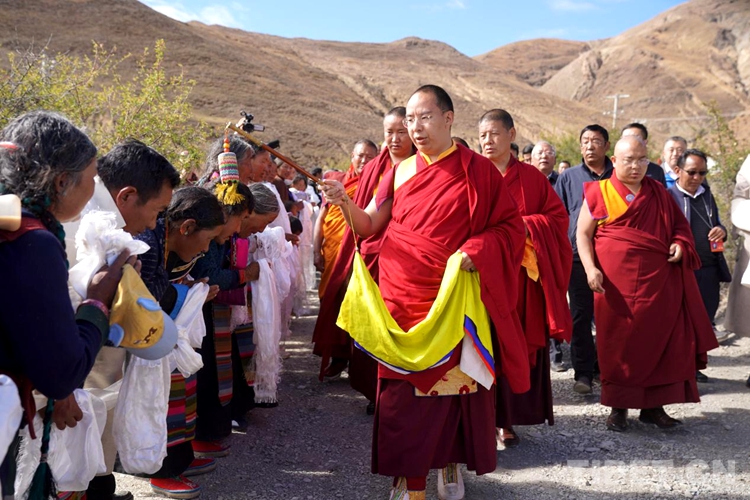 “從村微信群里知道班禪大師要來的消息,我們興奮了好些日子,村民們商量了許久以什么樣的方式迎接班禪大師。老人們說,我們村曾經(jīng)用藏戲隆重迎接過十世班禪,今天我們也想用傳統(tǒng)的藏戲再次隆重迎接十一世班禪大師,并特意向鄉(xiāng)政府申請得到同意。村民們興奮激動之余,便一遍又一遍排練起藏戲。我們想以咱百姓最好的、最獨特的傳統(tǒng)方式迎接班禪大師?!崩慰h柳鄉(xiāng)西嘎村村民達娃滿臉幸福地說,“大老遠的,班禪大師能到我們村,心里是說不出的感恩。雖是農(nóng)忙秋收季節(jié),早早的就忙完農(nóng)活,穿上新衣,到村口迎接班禪大師,盼望著早早見到班禪大師?!?/p>