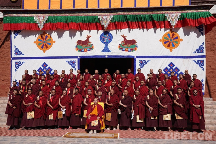 圖為班禪在亞木呂龍寺與僧人合影留念 攝影:王淑