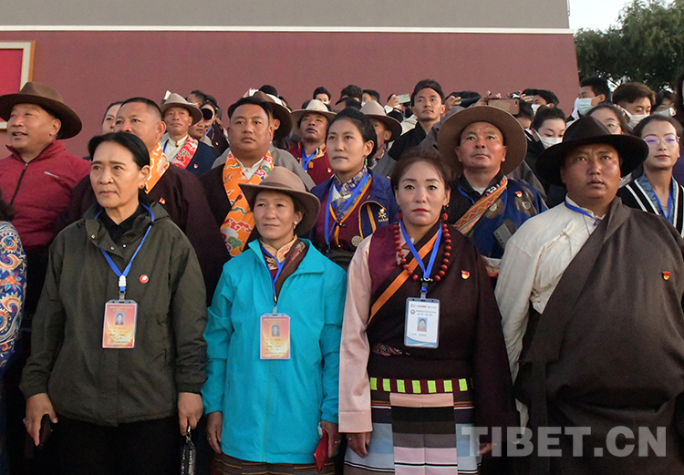 當日凌晨,懷著萬分激動的心情,來自西藏自治區(qū)山南市貢嘎縣森布日極高海拔生態(tài)搬遷安置點的基層干部身著民族盛裝,來到北京天安門廣場,站在東觀禮臺上靜靜地等候著五星紅旗冉冉升起。