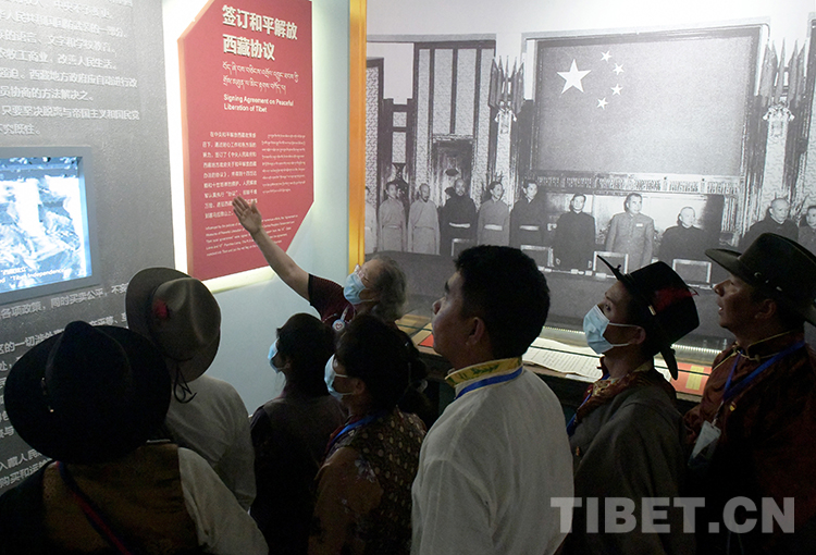 這是森布日那曲極高海拔生態(tài)搬遷安置點的赴京基層干部在西藏文化博物館參觀紀念西藏和平解放70周年展覽(唐召明2021年10月16日攝)