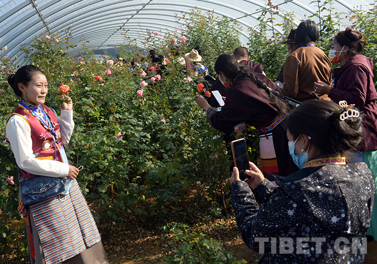 這是森布日那曲極高海拔生態(tài)搬遷安置點的赴京基層干部在北京密云區(qū)參觀現(xiàn)代農(nóng)業(yè)時,拍照留念(唐召明2021年10月21日攝)