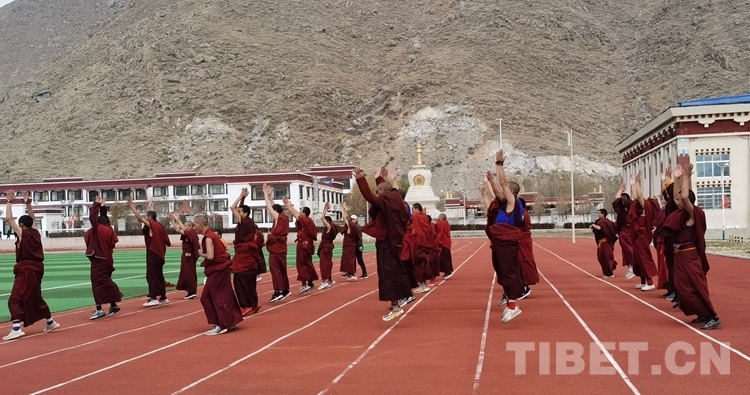 圖為佛學(xué)院學(xué)員在上體育課 攝影:王淑