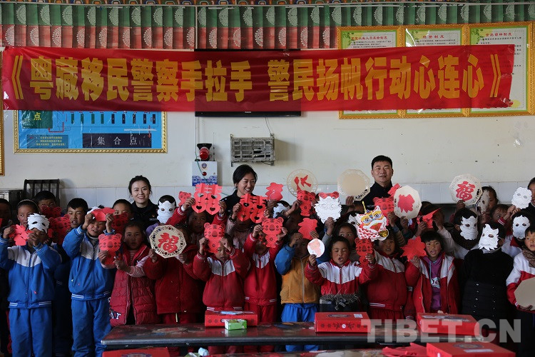 隨后,民警們?yōu)橥瑢W(xué)們發(fā)放了拉薩邊檢站和東莞邊檢站共同準(zhǔn)備的兒童手工DIY禮盒,并和同學(xué)們一起完成剪紙手工制作,共同感受著中華傳統(tǒng)文化美學(xué),體驗(yàn)手工制作的樂(lè)趣。現(xiàn)場(chǎng)歡聲笑語(yǔ),其樂(lè)融融。