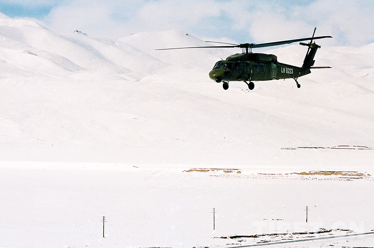 旋即,首都北京來電,中央派運(yùn)輸機(jī)空投物資。1990年3月23日,銀燕展翅藏北,身為新華社西藏分社攝影記者的我,登上空投救援的大飛機(jī)跟隨采訪。不幾日,中央又電令兩架“黑鷹”直升飛機(jī)投入到緊張的抗災(zāi)救災(zāi)工作中。