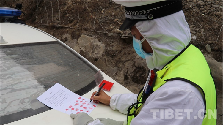 事故處理、路面執(zhí)勤、政策宣講,這每一件事情都和人民群眾的生命和財產(chǎn)安全息息相關(guān),從警至今,扎西四郎累計檢查車輛十五萬臺次,處理交通事故兩千一百余起,開展交通安全宣傳一千余次,這一串串?dāng)?shù)字凝結(jié)成了他身為民警肩頭的責(zé)任和心中的驕傲。江達縣的一位個體戶郭偉告訴我們,“有一次,我媳婦騎車和別人發(fā)生碰撞,叫我到警務(wù)站的時候,我非常地緊張忐忑,因為之前沒有遇到過這樣的事情,加上我是四川人,沒想到經(jīng)過一位警官的耐心勸導(dǎo)和調(diào)解溝通后,事情解決的很公平,很圓滿。后來,我才知道,這名警官的名字叫扎西四郎。”