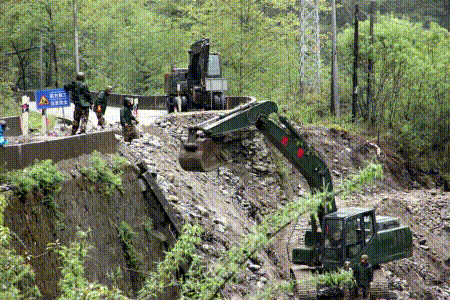 圖為路途中遇到清障、維護工作 攝影:李元梅 王茜