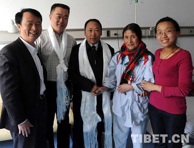 這是時任全國婦聯(lián)副主席甄硯(右一)受時任十一屆全國人大常委會副委員長陳至立委托,到北京口腔醫(yī)院看望斯求卓瑪,并送來慰問金(唐召明2010年4月14日攝)