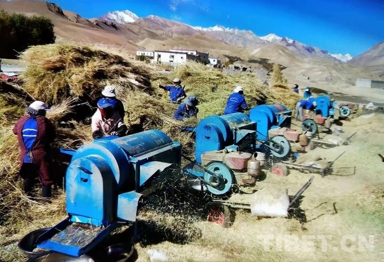 圖為阿里地區(qū)普蘭縣普蘭鎮(zhèn)赤德村村民收割農(nóng)作物 圖片由旦增多吉提供