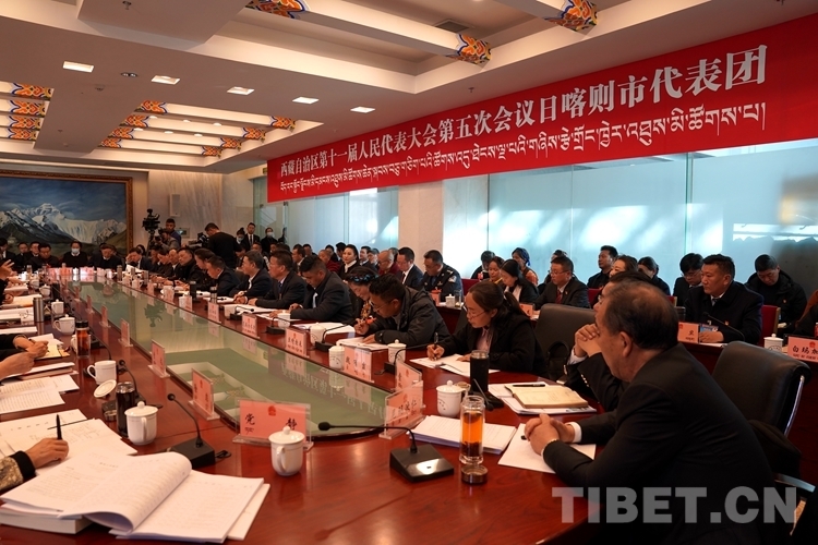 圖為日喀則市代表團審議政府工作報告 攝影:王淑