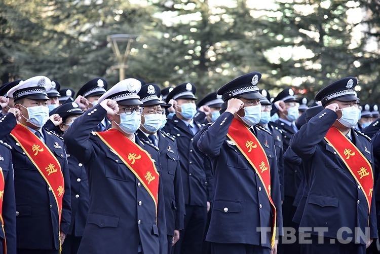 中國(guó)西藏網(wǎng)訊 1月10日上午,冬日暖陽剛照醒拉薩河谷,西藏自治區(qū)公安廳機(jī)關(guān)大院里公安功模代表、民警代表、新入警人員等便聚集起來。大家面向警旗肅立、敬禮并齊唱人民警察警歌,共同迎接第二個(gè)中國(guó)人民警察節(jié)。升旗儀式結(jié)束后,全體民警舉右拳進(jìn)行人民警察誓詞宣誓。