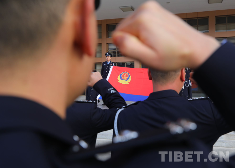 圖為林芝邊境管理支隊機(jī)關(guān)開展向警旗宣誓活動 攝影:姜凱峰