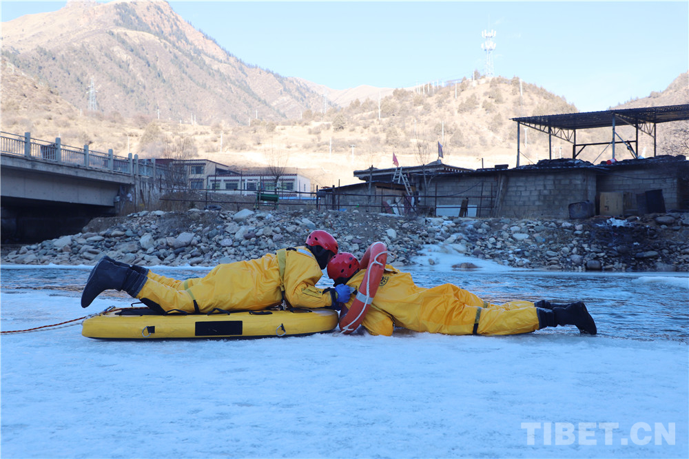 昌都市江達(dá)縣森林消防中隊針對當(dāng)前有可能擔(dān)負(fù)的冰雪救援災(zāi)害救援工作,未雨綢繆、嚴(yán)陣以待,把冰雪災(zāi)害救援能力作為年度訓(xùn)練要點(diǎn)。圖為西藏森林消防總隊昌都支隊江達(dá)中隊進(jìn)行模擬救援