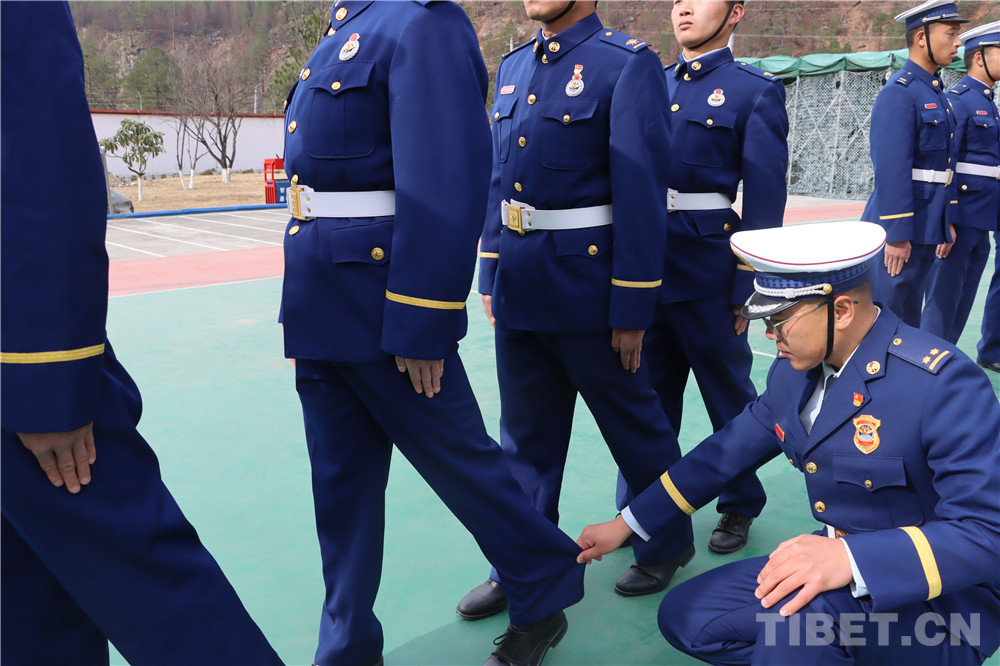 圖為西藏自治區(qū)林芝市察隅縣森林消防中隊進(jìn)行隊列訓(xùn)練