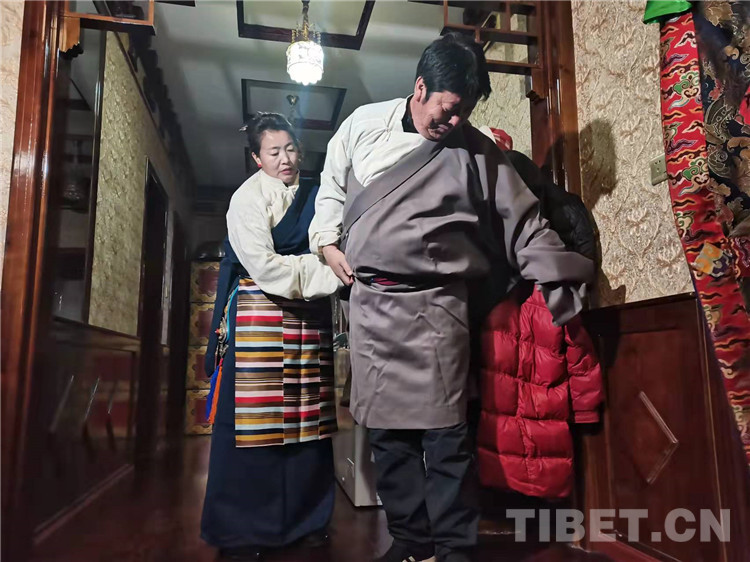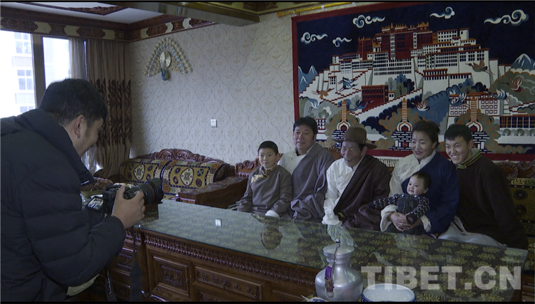圖為通夏村黨支部書記布嘎一家換藏裝準(zhǔn)備拍全家福