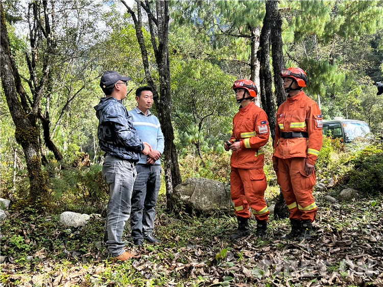 圖為與駐地護林員討論林區(qū)植被