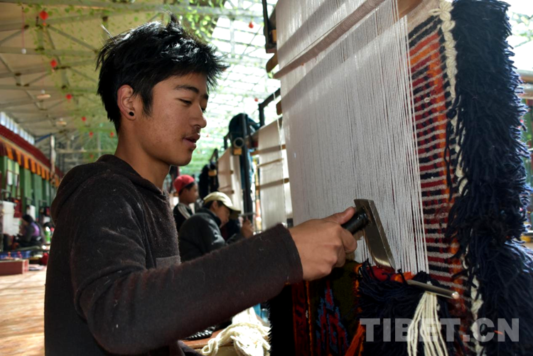 “剛到合作社每天工資160元,一個月下來就有小四千,一年收入妥妥的超3萬元?!闭f話間,巴頓也沒有歇下手中的活計。穿桿結(jié)扣,勤勞的雙手一直忙碌著,在合作社6年多,他已經(jīng)比較熟練地掌握了卡墊織法、色彩以及紋樣。如今,卡墊接活都是以承包方式,往往供不應(yīng)求,一家人住在裝修一新的藏式小院里,妻子現(xiàn)在也在參加合作社新員工培訓(xùn),四個孩子都進(jìn)了公立學(xué)校讀書,享受了義務(wù)教育免費“三包”政策。