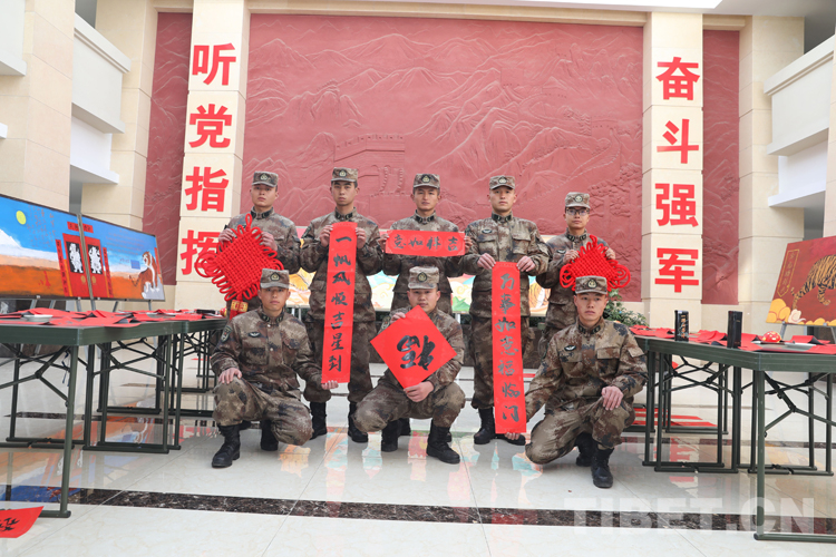 過年貼春聯,是中華民族的傳統(tǒng)習俗之一,增加過年氛圍的同時,也表達了官兵對新年美好的祝福。春聯,又稱“春貼”“門對”“對聯”,是過年時所貼的紅色喜慶元素,它以對仗工整、簡潔精巧的文字描繪美好形象,抒發(fā)美好愿望,是中國特有的文學形式,是中華民族過年的重要習俗。