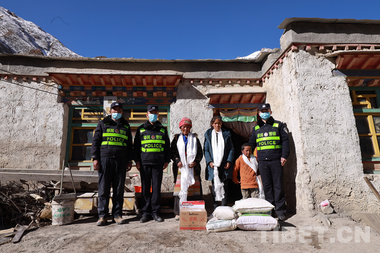 圖為日喀則邊境管理支隊吉隆邊境管理大隊貢當(dāng)邊境派出所民警慰問轄區(qū)困難群眾