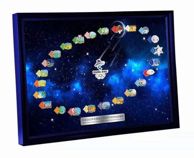 圖為全套“北京2022年冬奧會(huì)二十四節(jié)氣系列紀(jì)念徽章”與專用相框 圖片來(lái)源:北京冬奧組委官方網(wǎng)站