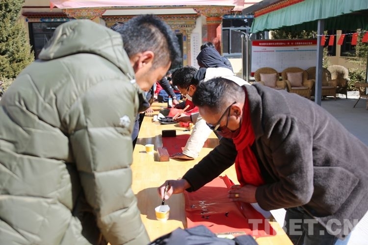 活動中,西藏各級共青團(tuán)組織還向現(xiàn)場的各族群眾和青少年宣傳了法律、環(huán)保、反電信詐騙等知識;自治區(qū)青年書法家協(xié)會的書法家們?yōu)楦髯迦罕娝蜕狭嗽⒁饧榈男履陮β?lián);青年創(chuàng)業(yè)團(tuán)隊將自主研發(fā)的扶貧農(nóng)產(chǎn)品、民族手工藝產(chǎn)品等帶到社區(qū)。整場活動不僅為群眾送去了豐富的精神文化大餐,也方便了群眾就近就便置辦年貨,營造了濃厚的節(jié)日氛圍。