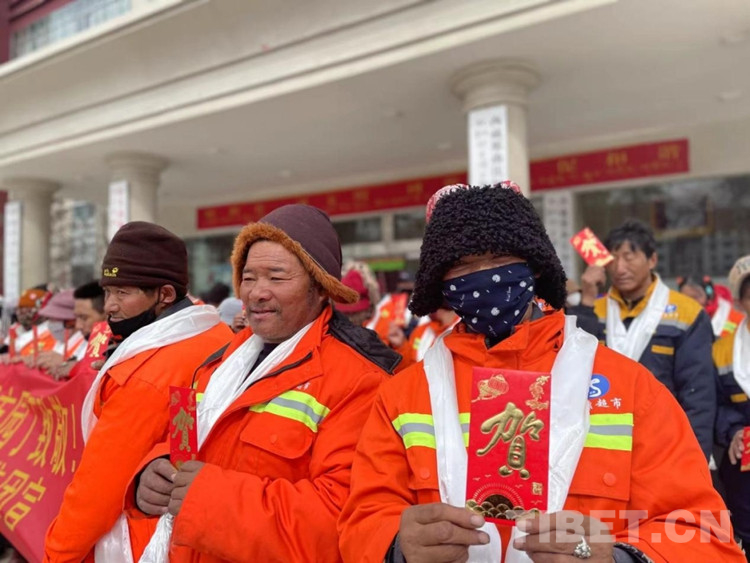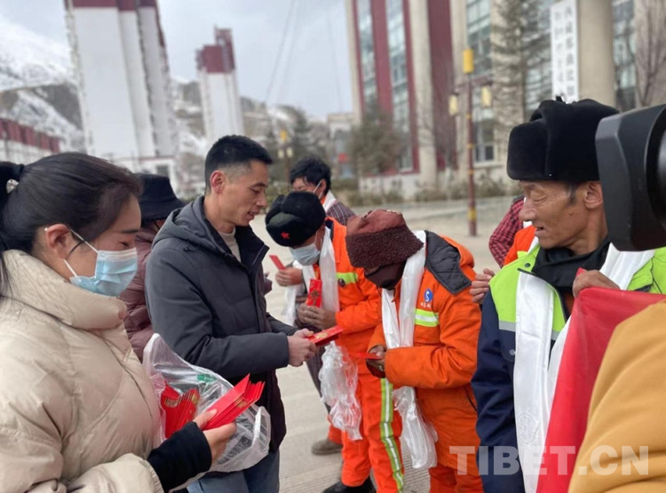 中國(guó)西藏網(wǎng)訊 2月28日,在藏歷新年到來(lái)之際,西藏自治區(qū)那曲市比如縣政府大樓前正在開(kāi)展一場(chǎng)溫暖人心的慰問(wèn)活動(dòng)。“新年好,給大家拜年了,衷心祝愿大家在新的一年里身體健康、工作順利?!?慰問(wèn)現(xiàn)場(chǎng),川英集團(tuán)負(fù)責(zé)人向每位環(huán)衛(wèi)工人和城管協(xié)管員獻(xiàn)上潔白的哈達(dá)致以新年的美好祝福,感謝他們?yōu)楸热绛h(huán)衛(wèi)事業(yè)作出的貢獻(xiàn),并送上1000元慰問(wèn)金。(中國(guó)西藏網(wǎng) 記者/賈華加 比如縣宣傳部供圖)