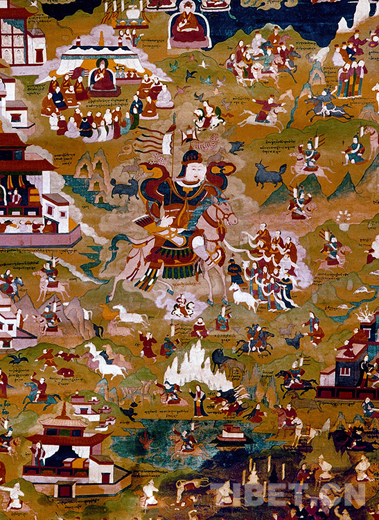 這是一幅描繪“格薩爾”故事的唐卡(唐召明1989年攝)