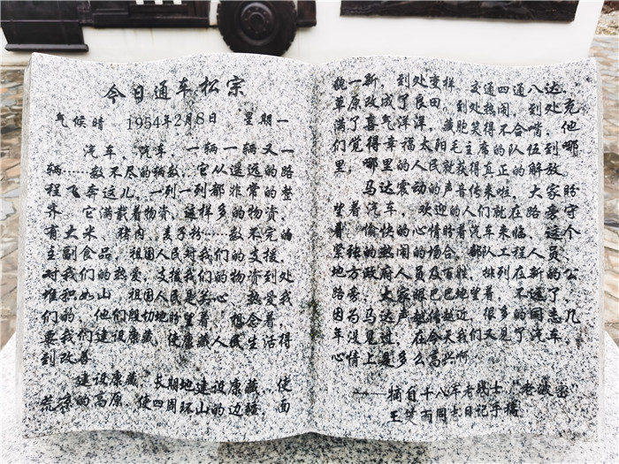 為更好地讓廣大干部群眾和八方游客了解筑路運(yùn)輸?shù)钠D難困苦、順利通車波密時(shí)的動(dòng)人場(chǎng)景,2021年12月,波密縣對(duì)廣場(chǎng)進(jìn)行了提檔升級(jí),從尊重歷史的角度,進(jìn)一步論證規(guī)范了廣場(chǎng)名稱?!安芡ㄜ嚰o(jì)念廣場(chǎng)”八個(gè)鮮紅大字仿佛在講述那段激情燃燒的崢嶸歲月,紅色的碑文篆刻著筑路部隊(duì)驚心動(dòng)魄修筑康藏公路時(shí)的艱辛與磨難,王笑雨同志的日記記錄著汽車駛?cè)氩軙r(shí)干部群眾臉上的激動(dòng)與新奇……教育、激勵(lì)和引導(dǎo)廣大干部群眾堅(jiān)定不移感黨恩、聽(tīng)黨話、跟黨走。(中國(guó)西藏網(wǎng) 圖文/波密縣組織部紅色工作專班)