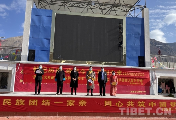 中國西藏網(wǎng)訊 時至三月,春回大地。為深入宣傳好西藏百萬農(nóng)奴解放的偉大意義,營造心向祖國心向黨、凝心聚力促發(fā)展的濃厚氛圍,3月28日,西藏自治區(qū)山南市加查縣安繞鎮(zhèn)小學(xué)嚴格按照當下疫情防控工作要求,舉行了“紀念西藏百萬農(nóng)奴解放63周年暨建設(shè)美麗幸福西藏共圓偉大復(fù)興夢想”慶?;顒樱餐T競ゴ笞鎳睒s昌盛,西藏的明天更加美好。