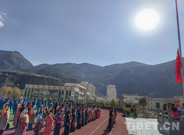 28日上午,全校師生共計800余人參加慶?;顒印熒鷤冊谇f嚴的國歌聲中舉行了升旗儀式。隨后,學(xué)生代表就西藏百萬農(nóng)奴解放63周年紀念日發(fā)表了國旗下演講,從舊西藏的故事講起,展示了如今新西藏的美好生活,號召大家銘記歷史,珍惜當下,學(xué)好知識,為家鄉(xiāng)的建設(shè)貢獻自己的力量。校長勉勵學(xué)生珍惜當下幸福生活,努力學(xué)習(xí),將來做合格的社會主義建設(shè)者和接班人。