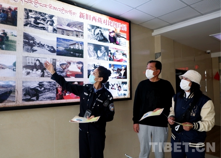圖為辦證室民警講解新舊西藏對比圖 攝影:仁青旺堆