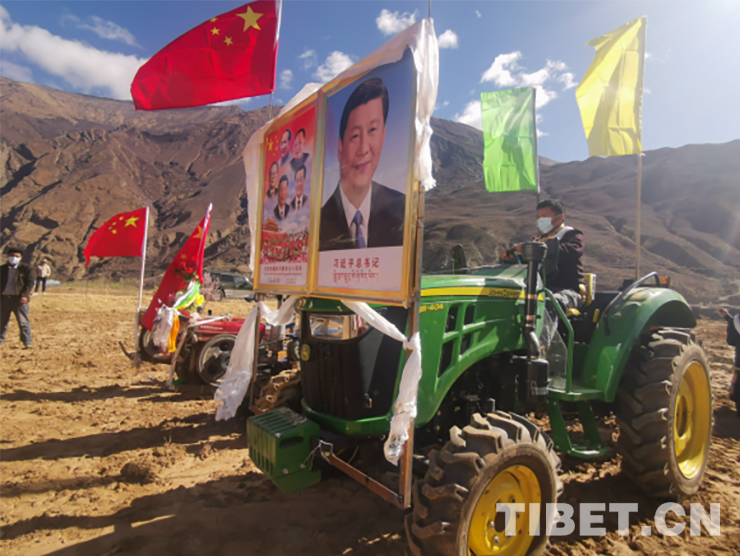 活動現(xiàn)場,群眾頭戴藏式金花帽,身著氆氌藏裝,或手持犁耙和鋤頭,或開著拖拉機,以吃切瑪、敬青稞酒、獻哈達、跳鍋莊、犁地、播種等傳統(tǒng)習(xí)俗,隆重慶祝共康村首屆開耕節(jié)。