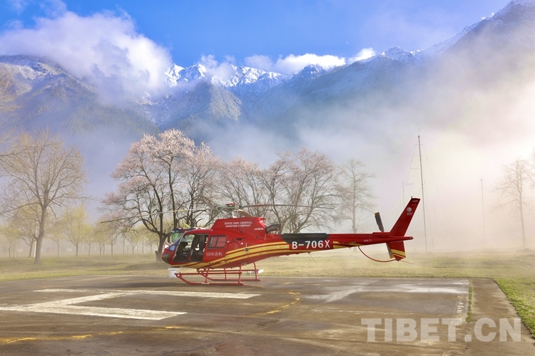 中國(guó)西藏網(wǎng)訊 云遮霧繞的早晨,青山如黛,桃花正盛。國(guó)網(wǎng)通航公司SG1151直升機(jī)機(jī)組的王磊卻沒時(shí)間欣賞這如畫的美景,一早便和同事們準(zhǔn)備今天的航巡作業(yè)。