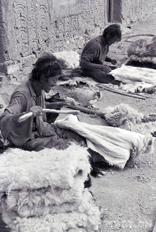 這是從西藏南木林縣來嘎措鄉(xiāng)揉皮子“打工”的藏族農(nóng)民工(唐召明1988年攝)
