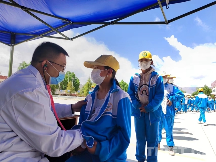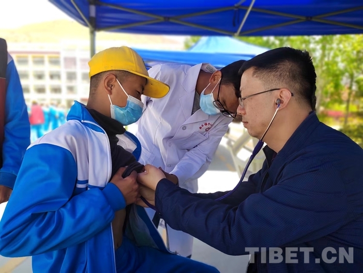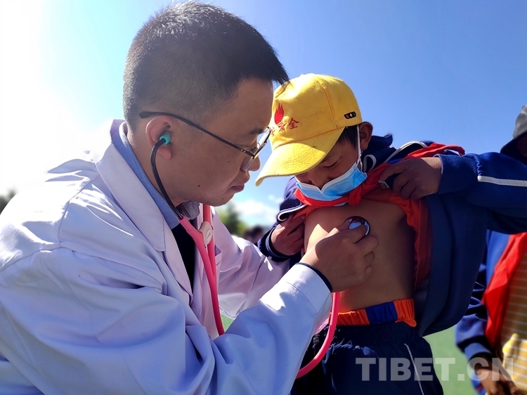 中國西藏網(wǎng)訊 4月22日,西藏自治區(qū)拉薩市曲水縣小學的操場上,600多名小學生有序站隊,來自南京醫(yī)科大學第二附屬醫(yī)院“心佑工程”團隊的醫(yī)生們,手拿聽診器,各人負責一個方陣的學生,開展初步聽診,開始了為期5天的全面篩查工作。