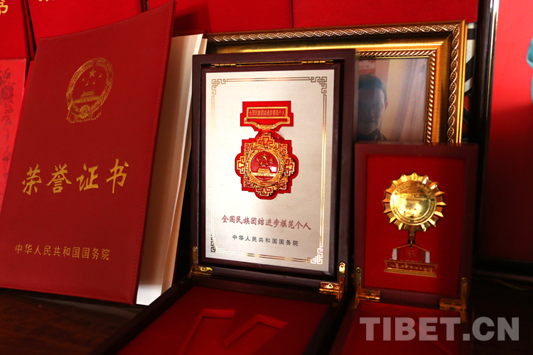 圖為楊桂房家中擺放的全國民族團(tuán)結(jié)進(jìn)步模范個人榮譽證書和獎?wù)?攝影:王佳豪
