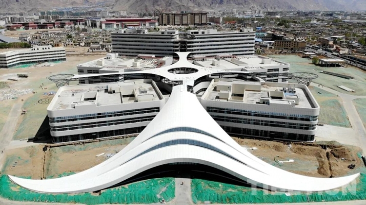 中國(guó)西藏網(wǎng)訊 挖掘機(jī)的轟鳴聲、鋼管的碰撞聲,走進(jìn)西藏自治區(qū)醫(yī)院項(xiàng)目施工現(xiàn)場(chǎng),一派忙碌的景象。從空中俯瞰,建設(shè)中的西藏自治區(qū)醫(yī)院外形宛如一朵格?;?,目前正進(jìn)行室內(nèi)裝修和機(jī)電安裝。