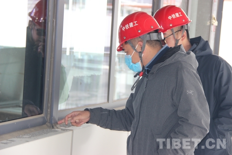 圖為張磊(左)和同事對(duì)西藏自治區(qū)醫(yī)院項(xiàng)目施工開展現(xiàn)場(chǎng)檢查