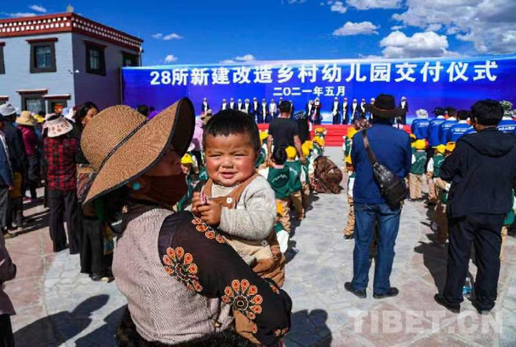 2021年“六一”兒童節(jié)前夕,由青島市第九批援藏工作隊(duì)籌建、中鐵十四局集團(tuán)有限公司捐建的雷貴村幼兒園交付使用,老師和家長(zhǎng)們?cè)僖膊挥脫?dān)心教室漏雨了。