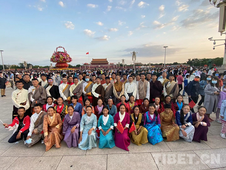 圖為2021年10月1日,拉薩市北京中學(xué)首屆“北京班”進(jìn)京游學(xué),參觀天安門(mén)廣場(chǎng)升旗儀式