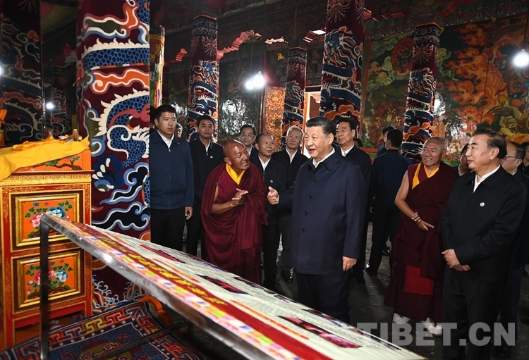 圖為習(xí)近平總書記在哲蚌寺察看措欽大殿。西藏自治區(qū)黨委宣傳部提供
