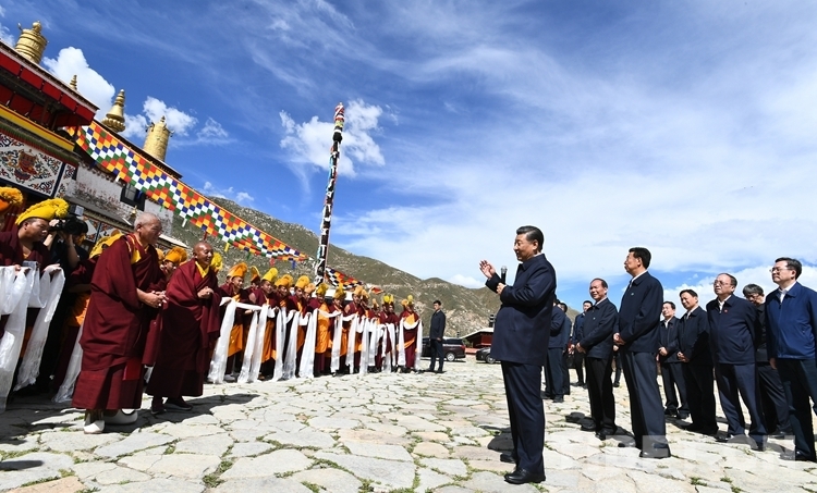 圖為習(xí)近平總書記在哲蚌寺考察。西藏自治區(qū)黨委宣傳部提供