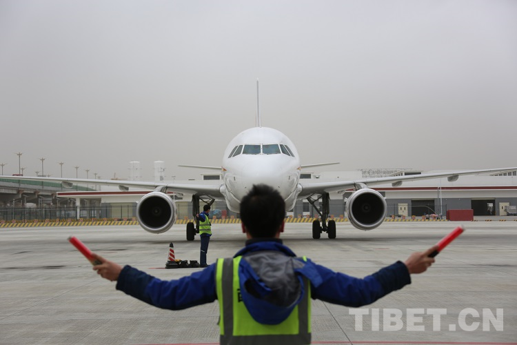 圖為一架航班抵達(dá)拉薩貢嘎機(jī)場 攝影:王佳豪
