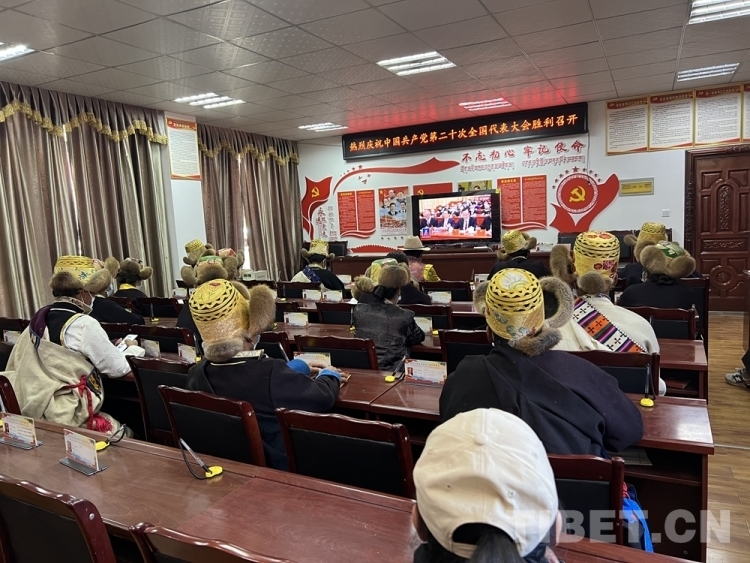 圖為西藏自治區(qū)山南市乃東區(qū)干部群眾收聽收看黨的二十大開幕會(huì) 圖片來(lái)源:藏源發(fā)布