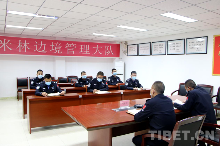 圖為米林邊境管理大隊(duì)民警專題學(xué)習(xí)黨的二十大精神報(bào)告會(huì)議 攝影:黃磊
