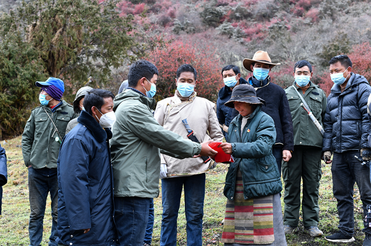 中國西藏網(wǎng)訊 日前,西藏自治區(qū)山南市玉麥鄉(xiāng)玉麥村第一書記索朗頓珠組織護(hù)邊員們開始了新一次的巡邏。臨行前,黨的二十大代表、“七一勛章”獲得者卓嘎特意叮囑索朗頓珠巡邏時要注意安全,走到哪里,就要把國旗帶到哪里,并把一面嶄新的國旗交到了索朗頓珠的手里。