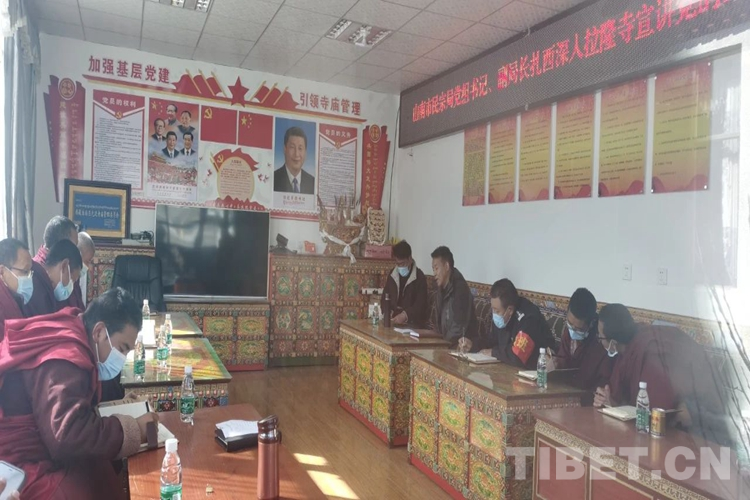 圖為洛扎縣拉隆寺僧人和駐寺干部深入學習黨的二十大精神,僧人們表示,要持續(xù)弘揚愛國愛教優(yōu)良傳統(tǒng),自覺踐行“四條標準”,不斷增進“五個認同”,牢固樹立“三個意識”,堅持藏傳佛教中國化方向,積極推動宗教與社會主義社會相適應,堅定不移聽黨話、感黨恩、跟黨走。