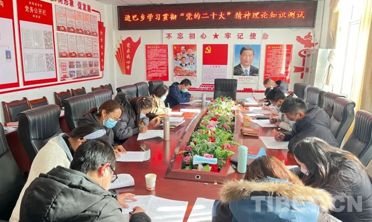 圖為洛扎縣邊巴鄉(xiāng)黨委理論學習中心組學習貫徹黨的二十大精神并進行黨的二十大精神理論知識測試。(中國西藏網 記者/賈華加 圖片來源:洛扎縣宣傳部)