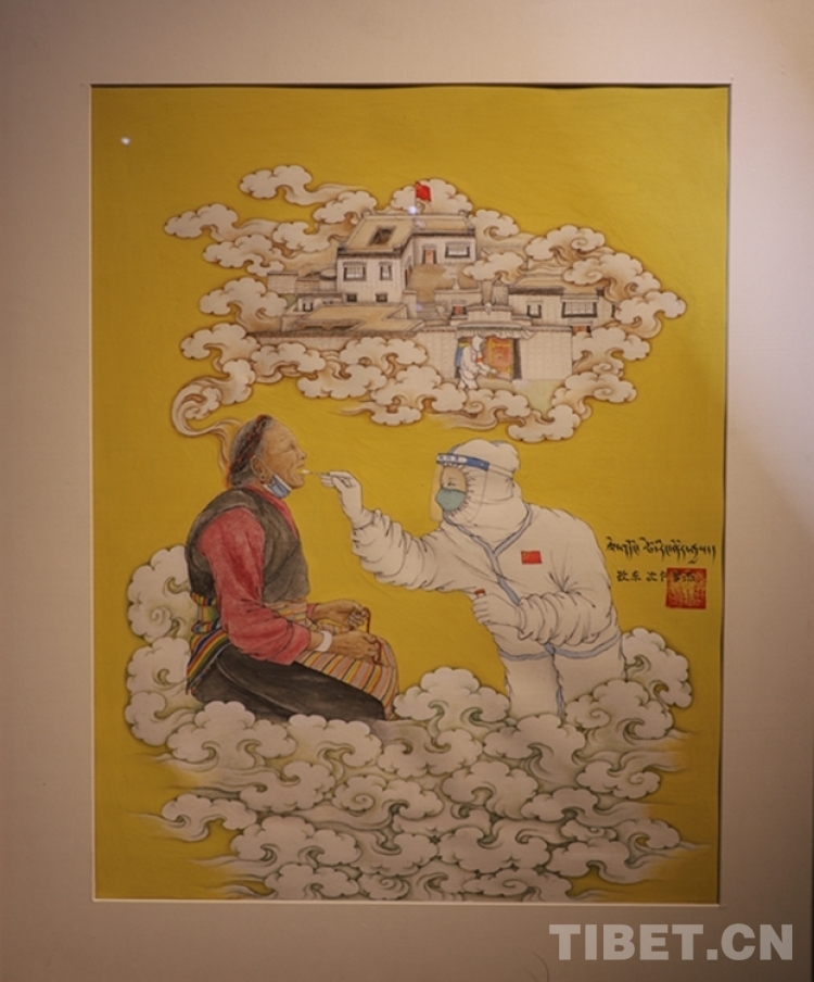 “畫家們在延續(xù)深厚傳統(tǒng)文化,彰顯西藏唐卡繪畫高超技藝的同時(shí),不固守畫派風(fēng)格特色,用創(chuàng)新的方式聚焦偉大時(shí)代,描繪美好生活,歌頌西藏與祖國同行的盛世圖景?!蔽鞑刈灾螀^(qū)文聯(lián)副主席尹小林說。