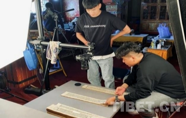 圖為2021年,西藏民族大學(xué)實(shí)習(xí)生在布達(dá)拉宮藏經(jīng)閣拍攝古籍文獻(xiàn)