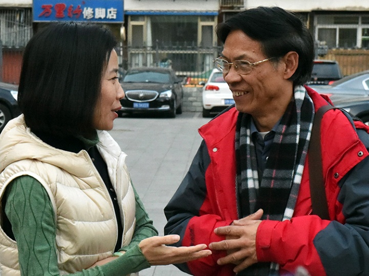 這是黃綿瑾(右)與中國(guó)評(píng)劇院院長(zhǎng)侯紅(左)就評(píng)劇藝術(shù)進(jìn)行交流(唐召明2017年11月26日攝)